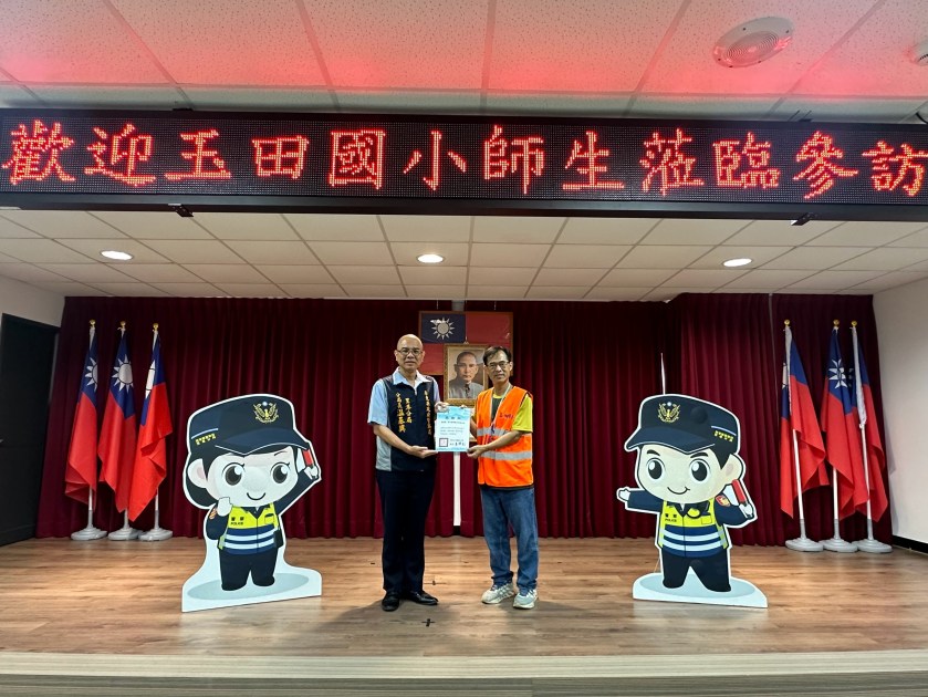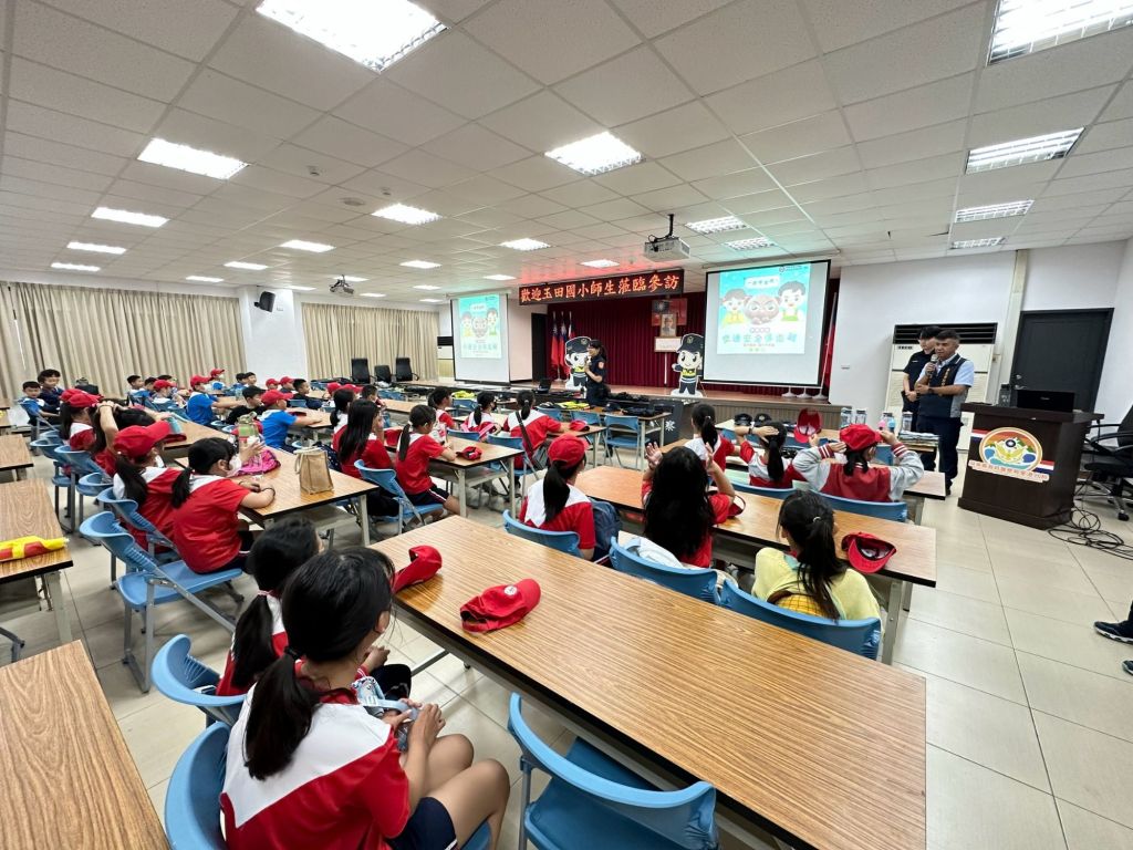 屏東縣里港鄉玉田國小四年級師生於今(25)日上午參訪屏東縣政府警察局里港分局,為配合學校「走讀庄頭課程」並提升學童交通安全觀念,警方特別規劃互動體驗課程,包括交通安全宣導有獎徵答、警用裝備介紹及穿戴體驗,揭開警察執法神秘面紗,藉此提升學童們學習興趣並加深印象,進而能達到預防犯罪、提升交通安全的效果。