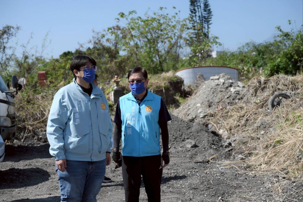魏嘉彥市長今(27)日上午在清潔隊長吳慶展與殯葬所長陳柏欣的陪同下,前往佐倉公墓關切蚊蟲防治噴藥作業,他表示,天氣回暖後,雜草的生長速度相當快,而小黑蚊更是猖獗,希望透過事前的整備工作,提供更為整潔的祭拜環境,他也提醒民眾掃墓時可穿著透氣的長袖、長褲衣物,注意防曬並避免被蚊蟲叮咬。