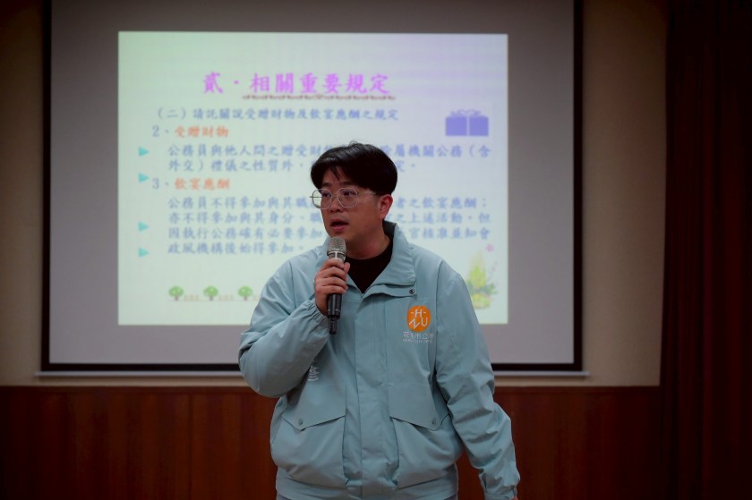 為建立同仁在執行公務時的正確法律認知,花蓮市公所日前在三樓簡報室舉辦「公務員廉政法治教育與實務案例分享」反貪講習,邀請前任新竹縣政府政風處處長張宗耀說明行政透明的重要性,市長魏嘉彥也在政風室主任李貞儀的陪同下,與各課室同仁列席聆聽,期盼增進同仁守法知能,提升民眾對公部門的清廉信任度。