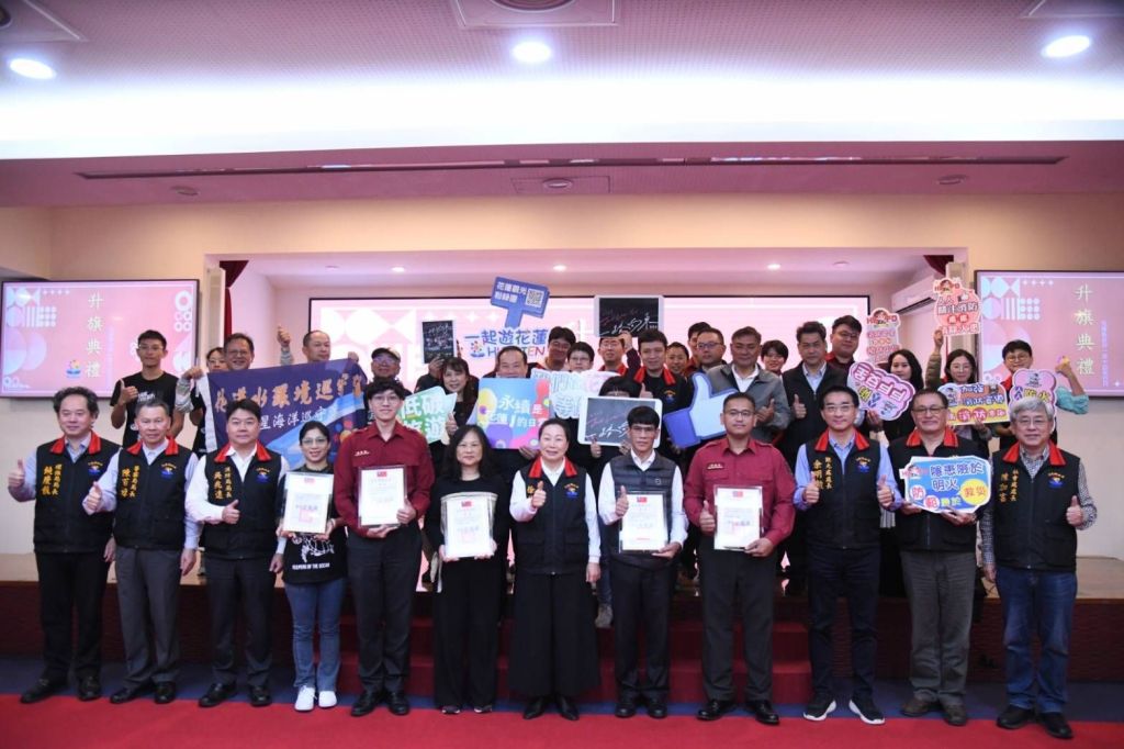 典禮中,徐縣長表揚縣府業務達人社會處葛玉樺約聘社工師,藉由分析工具規劃因地制宜服務,制定脫貧方案及獎勵活動,扶助社會弱勢翻轉困境;消防局陳靖朋隊員則是112年消防署績優人員-救護之王,為丙組縣市執行救護案件最多者。