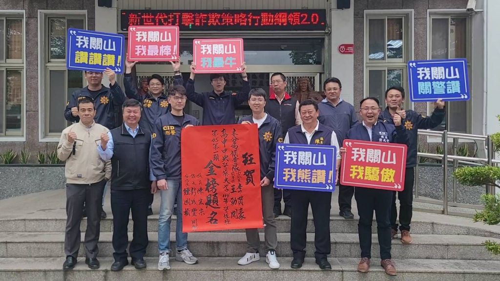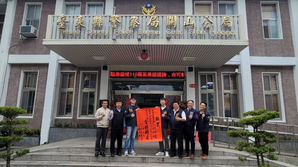 臺東縣警察局關山分局地靈人傑、英雄出少年!昨(7)日午後喜氣洋洋,分局長鍾國楨特邀臺東縣議員陳宏宗、關山鎮長彭成豐,另還有副分局長潘慶鴻、偵查隊長鄭志舷、組長李冠穎及同仁的恭賀下,於14時30分,在大門舉行簡單隆重的「金榜題名」紅榜張貼儀式,恭賀偵查隊小隊長李貫豪及偵查佐王勁閎,雙雙通過中央警察大學第一類警佐班考試,為分局再添佳績,可謂雙囍臨門、喜上加喜,同仁也感到「與有榮焉」!