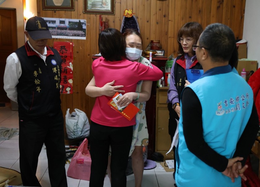 吉安鄉北昌村劉姓弱勢家戶日前透過社群平台發文求助,鄉長游淑貞獲悉當下即指示社會課進行協助,會同傅崐萁立法委員辦公室主任李松年與北昌村長劉文賢及相關社福人員到宅探視關懷。案主劉女士感謝游淑貞鄉長與傅崐萁立委團隊偕村長即時伸出援手,在他們最需要的時候獲得實質幫助。