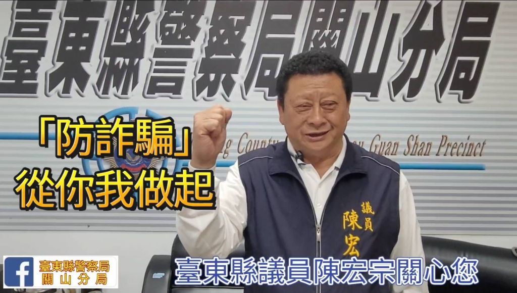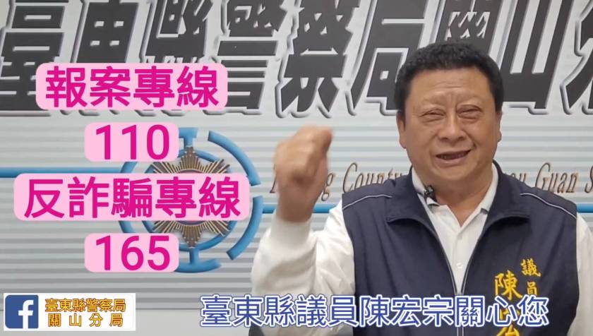 值得一提的是,臺東縣議員陳宏宗對防詐騙工作高度重視,特別應關山警分局長鍾國楨邀請,於「假投資短片」片尾現身,握拳鏗鏘有力地呼籲:「防詐騙從你我做起!報案專線110!反詐騙專線165!」其堅定態度展現對詐騙犯罪的不容忍,也凸顯地方民意代表與警方合作無間,共同守護民眾財產安全。陳宏宗議員長期關注治安議題,此次親自為宣導影片發聲,更彰顯其對公共事務的積極參與,獲得地方民眾一致好評。