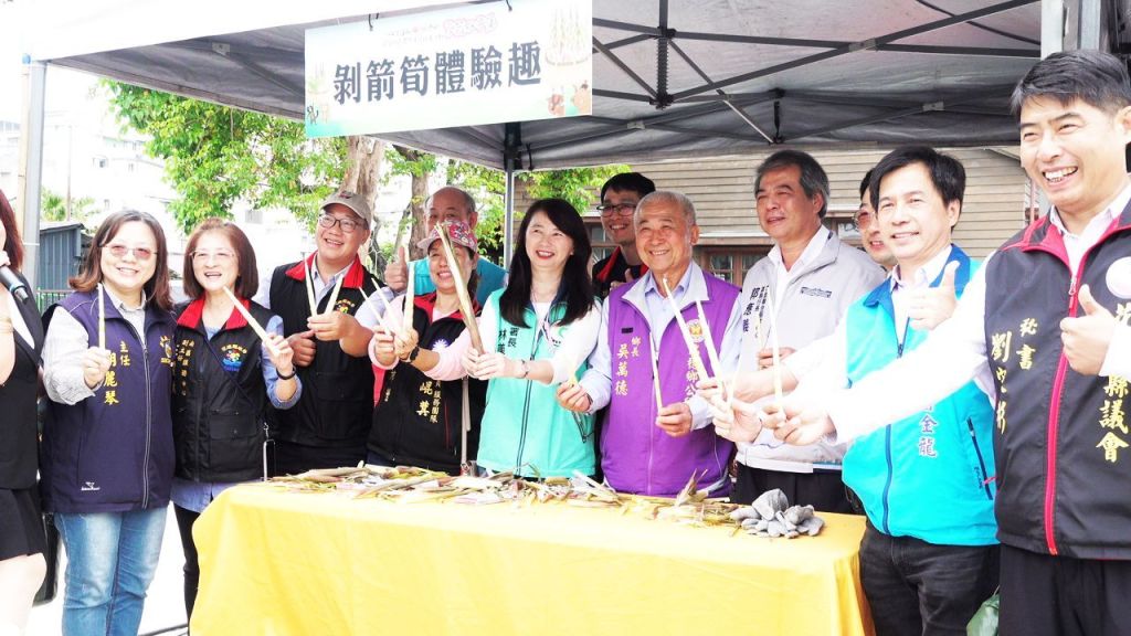 今(12)日上午活動現場熱鬧非凡,瑞穗鄉長吳萬德、行政院東部聯合服務中心副執行長郭應義 、農糧署東區分署分署長林美華、立委傅崐萁服務處主任張沛瑩、立委鄭天財服務處主任陳慶喜、花蓮農業改良場秘書葉育哲、觀光署花東縱谷國家風景區管理處秘書蔡威平、花蓮縣政府農業處代理副處長郭仕強、花蓮縣政府南區服務中心副主任王麗秋、花蓮縣副議長徐雪玉、議員林玉芬、議員簡智隆、縣議會秘書劉宋彬、花蓮市公所課長簡德勳、吉安鄉公所主任曾金龍、新城鄉公所主任胡麗琴、瑞穗鄉戶政事務所主任江坤霖、瑞美村村長林禹賢、富民社區發展協會理事長李訓榮、瑞穗社區發展協會理事長范姜秀村、鶴岡社區發展協會理事長游秀珍、瑞穗客屬會榮譽會長余瑞琴等人,共同啟動這項促銷活動,並體驗剝箭筍樂趣,以行動支持筍農。