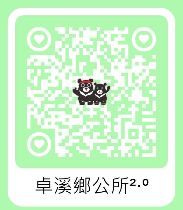 掃描以下QR code 即可加入公所新臉書粉絲專頁-卓溪鄉公所2.0,請大家追蹤、按讚、分享。