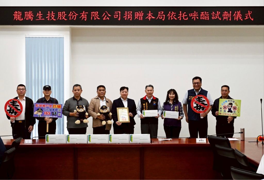依托咪酯原為用於麻醉的醫療藥物,惟遭不法分子濫用後,造成多起危害事件,使用者可能出現意識混亂、肢體失控甚至呼吸衰竭等症狀,危害深遠。政府已將其列為第二級毒品,警方亦持續強化對新興毒品的查緝與防制作為。龍騰生技總經理魏幸紅表示,毒品對個人健康、家庭和社會的傷害不容忽視,而警察是維護社會治安的第一線,必須有足夠且合格的毒物快篩試劑,以快速準確地檢測出新型毒品依托咪酯成分,更有效地打擊與防制毒品。此次捐贈的快篩試劑,能夠立即應用於實務毒品篩檢,提高查緝效率遏止毒品流通。