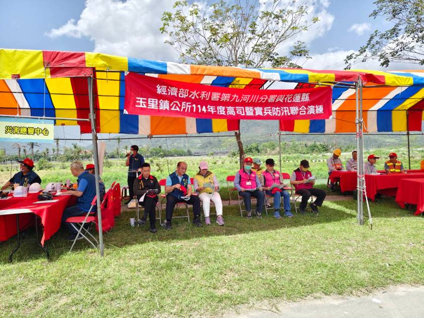 玉里鎮公所於今(15)日上午10時,在玉里鎮啟模里玉水圳(啟模濕地)堤防舉辦「114年度河川高司暨實兵防汛演練」。此次演練旨在加強各單位間的災害應對能力,包括離災、搶險、復原、災報及災民收容聯網作業,並結合過往的防災經驗,檢視可能的疏漏之處,以確保未來災害防救工作能迅速、安全且達到零傷損的目標。立法委員傅崐萁南區服務處主任潘俊霖、經濟部水利署第九河川分署主任工程司林弘毅、花蓮縣政府建設處副處長張志豪、臺北榮民總醫院玉里分院副院長平烈勇、秘書游志興、花蓮縣議員黃玲蘭、議員鍾素政,鎮民代表吳新文、公路局東區養護工程分局助理工程師陳厚臻、玉里國中校長余采玲、各里里長等皆到場指導觀摩。