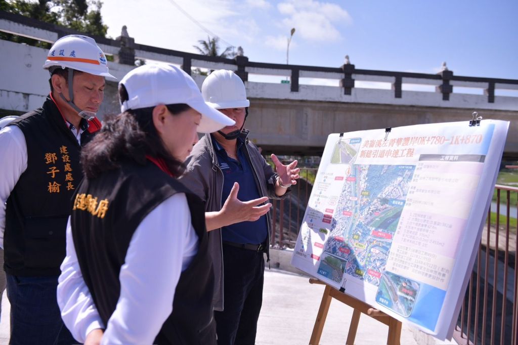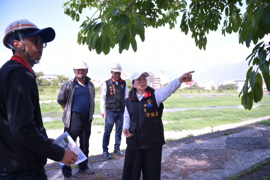 花蓮縣長徐榛蔚持續推動休閒及旅遊空間,今(16)日在縣府建設處長鄧子榆及同仁陪同下,親自視察「美崙溪左菁華護岸0K+780-1K+870新建引道串連工程」進度,並指示建設處進一步優化沿線設施。目前工程預計114年5月底前完工,完工後將打通美崙溪左岸與尚志路斷點,進而串聯沿岸河畔與美崙山景點,讓遊客暢遊美崙溪景色並帶動地方觀光發展。