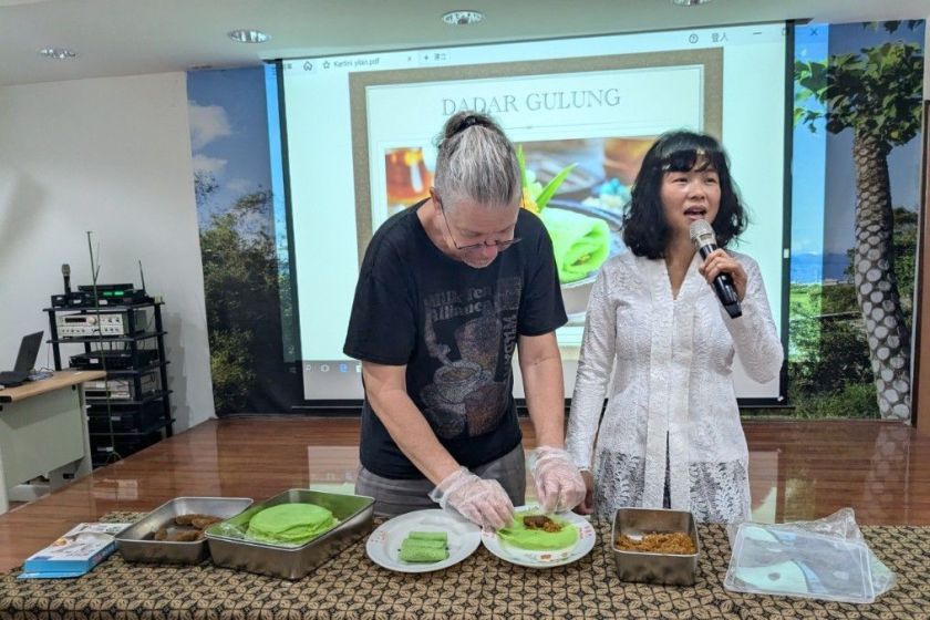 活動的最後當然也少不了道地印尼點心Dadar Gulung的製作體驗,它是由香蘭葉、椰子糖與椰絲製作而成,香氣濃郁且口感豐富。這些甜點不僅是味蕾上的享受,更是印尼家庭與文化記憶中的一部份。