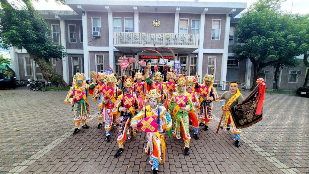 天后宮擁有百年歷史,是關山鎮乃至整個縱谷地區重要的信仰中心,每年農曆三月廿三日媽祖聖誕期間,皆吸引大批信眾參與慶典活動。此次祈福遶境,關山警分局除協調交通動線,也同步加強犯罪預防作為,由偵查隊及轄區各分駐(派出)所,前往各參與陣頭與宮廟進行約制,強調「暴力零容忍」,如有涉及不法或滋事行為,將依法嚴辦,絕不寬貸,確保活動在和平、理性的氛圍中順利進行。今(20)日16時15分許,臺東縣議員陳宏宗特別率領其所屬陣頭「威武堂 十二星君」至關山警分局進行祈福儀式,分局長鍾國楨親自設香案與同仁持香迎禮,展現警察對地方宗教文化的尊重與支持,並藉此機會融入交通安全、防詐騙等宣導,讓信仰的力量成為提升社區治安與安全意識的推手。