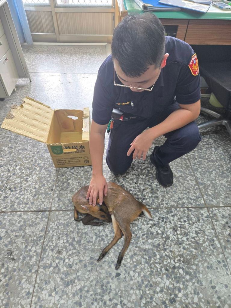 員警抵達現場,發現為一隻小山羌疑似遭車輛撞擊,倒臥於路中間。陳員查看後,此山羌仍有生命跡象,為保護山羌的生命,同時避免往來車輛發生事故,陳員立即將此山羌帶至多良派出所內,同時聯繫臺東縣動保中心,協助小山羌救護。