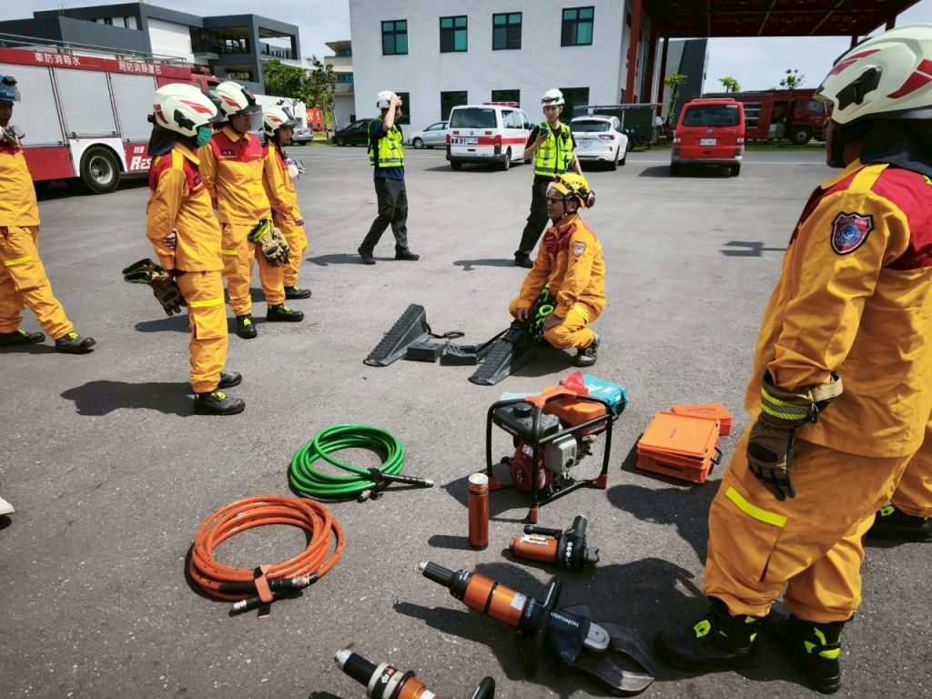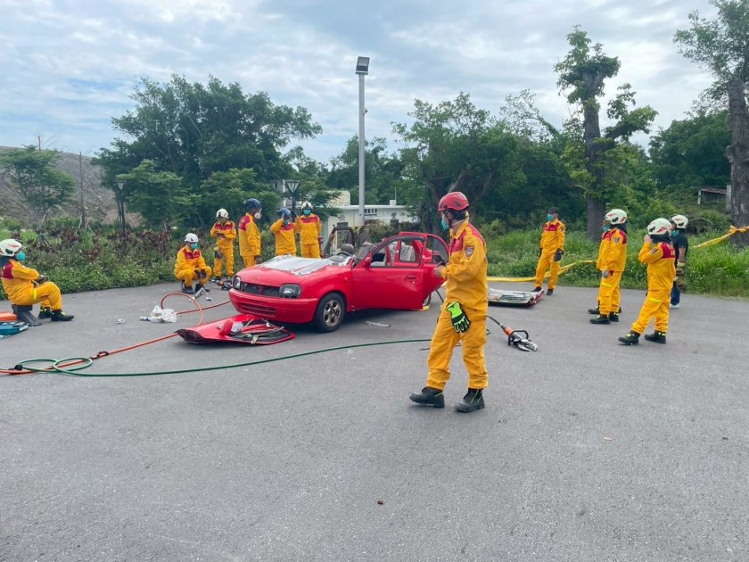 為因應車禍交通救援事故,花蓮縣消防局美崙分隊於近日於花蓮縣防救災訓練中心辦理救災義消與救護義消組合訓練,訓練內容包含「車輛穩固」、「車體破壞」、「三用油壓破壞組操作」、「擋風玻璃切割」、「傷患脫困」等核心技術,確保受困於車內之傷患能在第一時間運用最有效的方法脫離車禍事故之車體中。