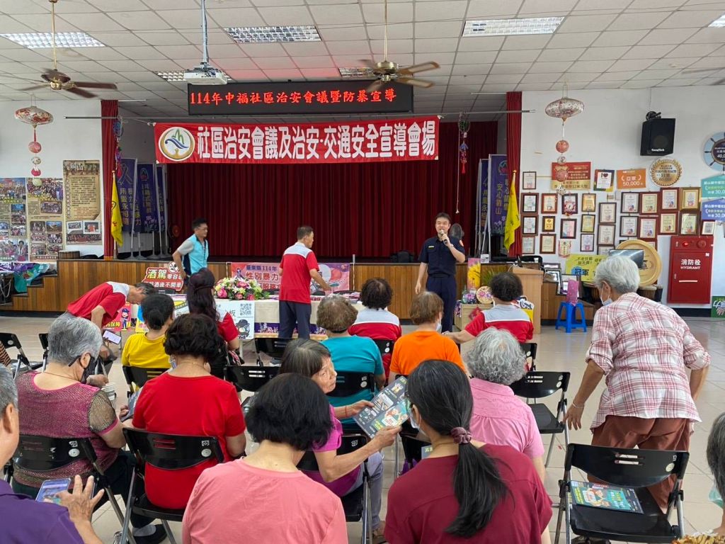 臺東縣關山鎮中福社區發展協會於昨(25)日10時,於里民活動中心召開社區治安會議,會議由理事長林進德主持,里長黃昭仁、理事偕莉娟及50多位里民熱情參與。臺東縣警察局關山分局亦派出多名幹部列席,包括第一組警員胡大志、交通組巡佐林張仲康、偵查隊警員魏子翔及關山聯合所所長呂凱寰,透過面對面交流,回應民眾對治安與交通的疑慮,展現「社區警政」的核心精神。