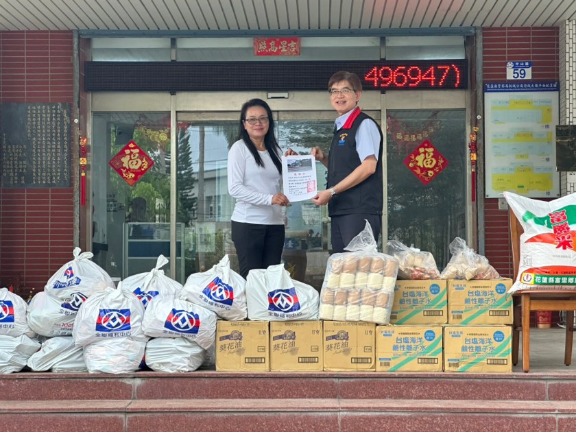 為關懷地方居民,彰化中央聖道院日前捐贈民生物資150份,以及饅頭、粽子各10包、礦泉水7箱、葵花油10箱,託請花蓮縣警察局新城分局協助轉介給有需要的在地居民。