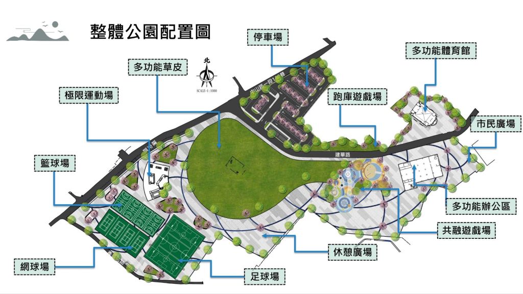 目前規劃中的佐倉運動公園包含運動場、停車場與行政中心,其中運動場部分將設置籃球、網球、足球等9座球類運動設施、極限運動場與共融遊戲場,滿足不同年齡層與族群的需求。除此之外,規劃更融入防洪與生態理念,設置生態截流溝(BIOSWALE)、基地透水與保水系統,預估保水面積達4萬平方公尺,不僅提升都市調節能力,也提供舒適宜人的綠色開放空間。