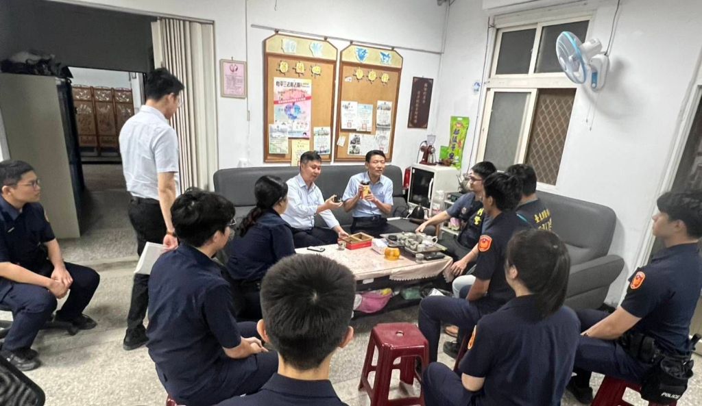臺東縣警察局長蔡燕明於昨(7)日19時10分許,在關山警分局長鍾國楨及偵查隊長鄭志舷的陪同下,前往池上分駐所親自頒發「破案茶」,表揚逮捕詐騙車手的第一線辦案同仁,並由池上分駐所所長蔡欣妤代表接受。蔡局長除肯定員警積極作為外,也勉勵全體同仁持續打擊詐欺犯罪,守護民眾財產安全。