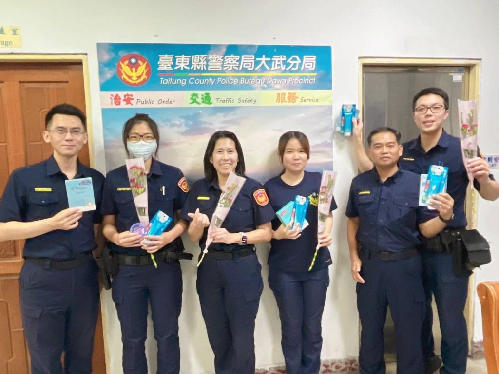 時值母親節前夕,大武警分局也轉贈台東縣警察局局長蔡燕明溫馨準備的面膜、乳霜,希望辛勞的女性同仁們,勤餘也能好好呵護、保養自己,感謝大家對於治安與交通工作的辛勤付出,也藉由這份貼心的禮物,傳遞對每一位女性同仁的祝福,並誠摯地祝願全天下的媽媽們「母親節快樂」。