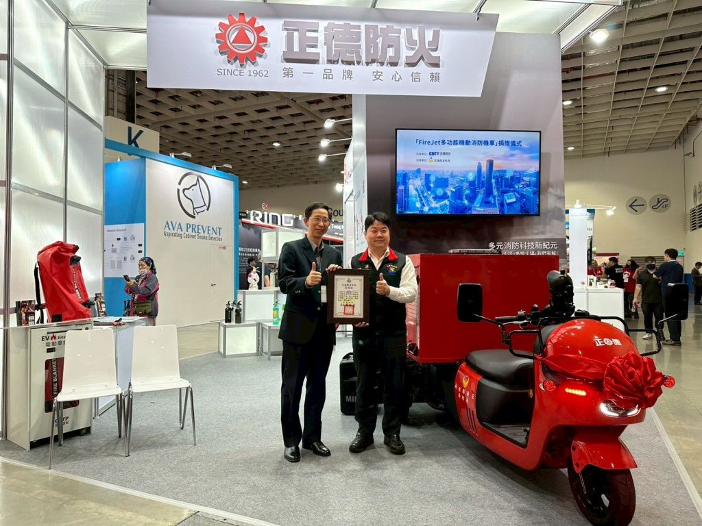 為強化花蓮地區消防救災初期應變能力,正德防火工業股份有限公司於114年5月7日,假「台灣國際安全博覽會」現場捐贈FireJet消防機車乙輛予花蓮縣消防局。捐贈儀式在台北南港展覽館舉行,由局長吳兆遠代表受贈,並公開感謝企業對消防工作的支持與投入,肯定FireJet在實務救災應用上所能帶來的助益,未來將有效補足現行裝備於特定場域的不足。