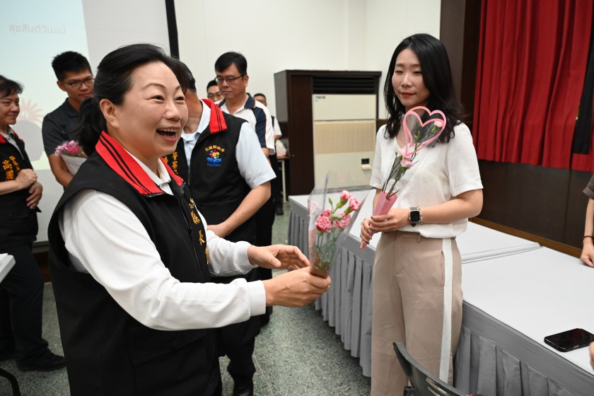 除此之外,花蓮縣長徐榛蔚特別從百忙之中撥冗蒞臨,親自致贈康乃馨與精美禮品給每位參與的女性同仁,並與局長一同向大家表達節日祝福與感謝之意。徐縣長肯定警察局女性同仁在工作上展現的專業與毅力,並指出她們在家庭與職場間展現出雙重角色的堅韌與溫柔,是社會安定的重要力量。這份支持與肯定,無疑為在場的媽媽同仁們注入莫大鼓舞,也展現縣府與警察局對女性警力人文關懷的實踐。
