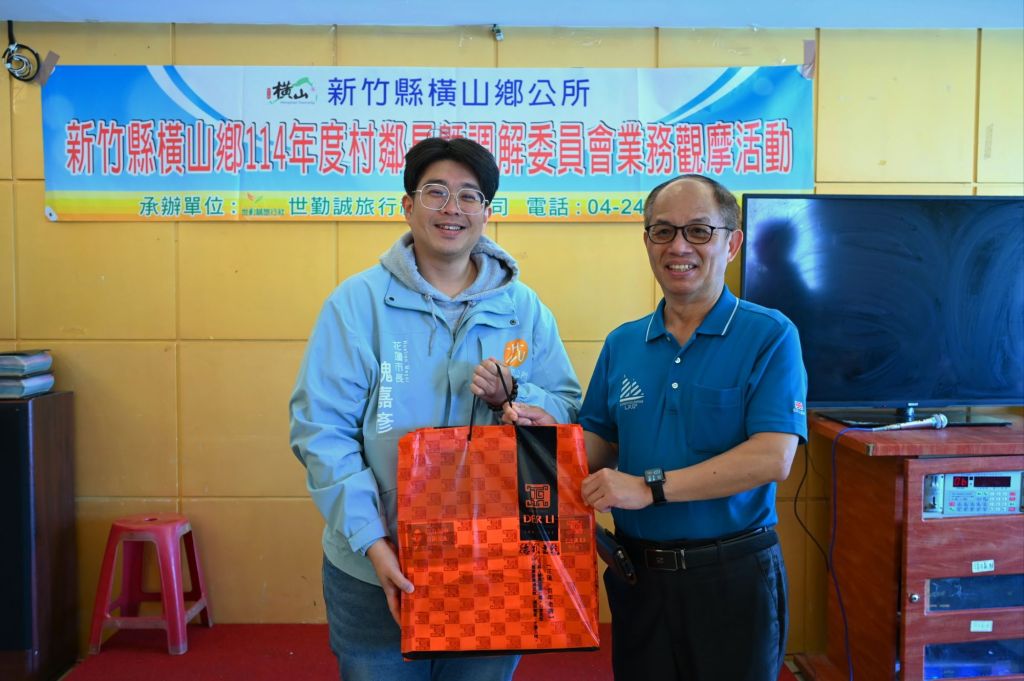 在活動現場,魏市長特別準備了花蓮在地名產「德利豆乾」作為禮物,贈送給橫山鄉長張志弘,象徵花蓮的熱情與特色;張鄉長則回贈了橫山的名產「澎風茶」,兩位首長以特產為媒,交流地方文化,增進兩地友誼。