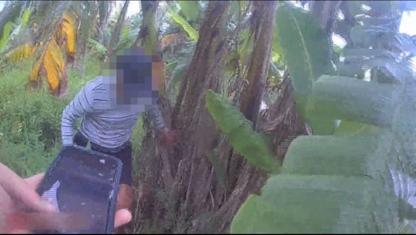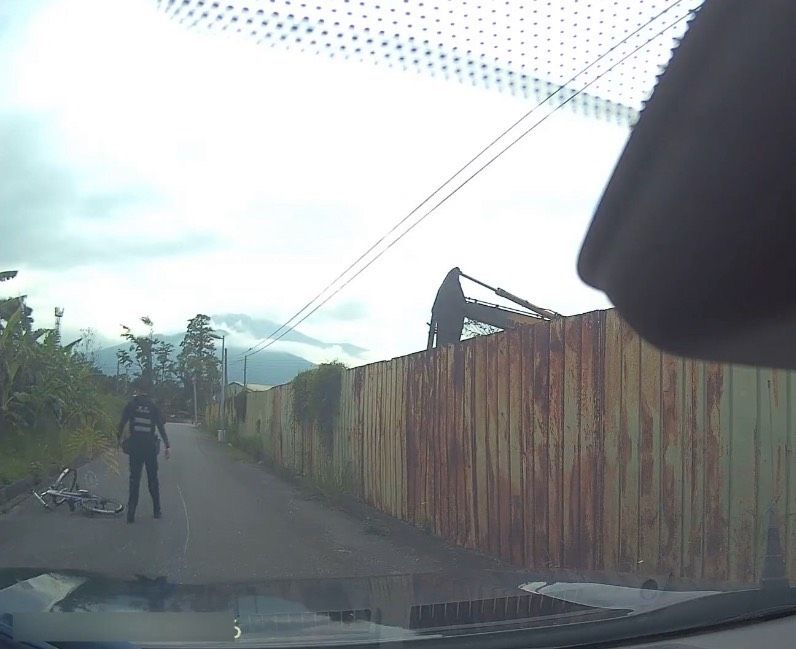花蓮縣警察局吉安分局光華派出所員警日前巡邏時,行經吉安鄉海岸路一帶,發現一名老翁騎乘腳踏車逆向行駛於車道中央,行跡十分可疑。警方立即上前攔查,未料此名老翁見警靠近,竟猛踩踏板向一旁小路彎去,隨後棄車,躲入一旁茂密的樹叢中企圖避查。員警見狀未作遲疑,立即下車奮勇追捕,毫不畏懼地衝入濃密林間展開圍捕。