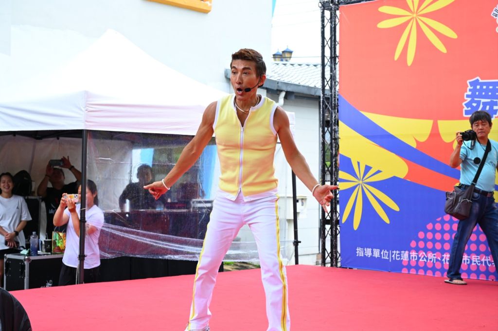亞洲有氧天王潘若迪也驚喜現身,以活力四射的表演炒熱現場氣氛,引發民眾熱烈歡呼與拍照留念。是魏市長多年好友的他,過去多次與藝人朋友親自來到花蓮展現支持,近期他以席琳狄翁、白雪公主壞皇后等角色仿妝爆紅,這次特別受邀站上花蓮市的舞台,也吸引大批粉絲圍觀。