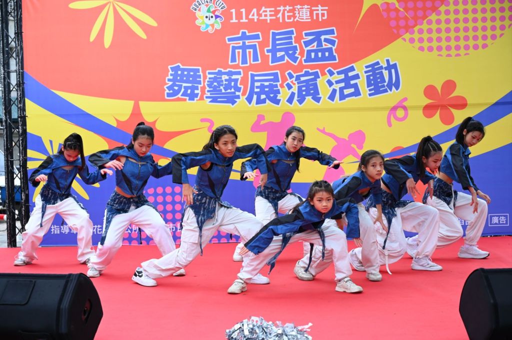 114年花蓮市「市長盃」舞藝展演活動昨(10)日在舊鐵道行人徒步區登場,吸引十餘個在地舞團、近200位舞者參與演出,亞洲有氧天王潘若迪更驚喜現身表演,市長魏嘉彥專程到場致意,感謝各團體投入表演,並期盼透過活動展現城市藝文活力,提供舞蹈愛好者交流切磋的平台。