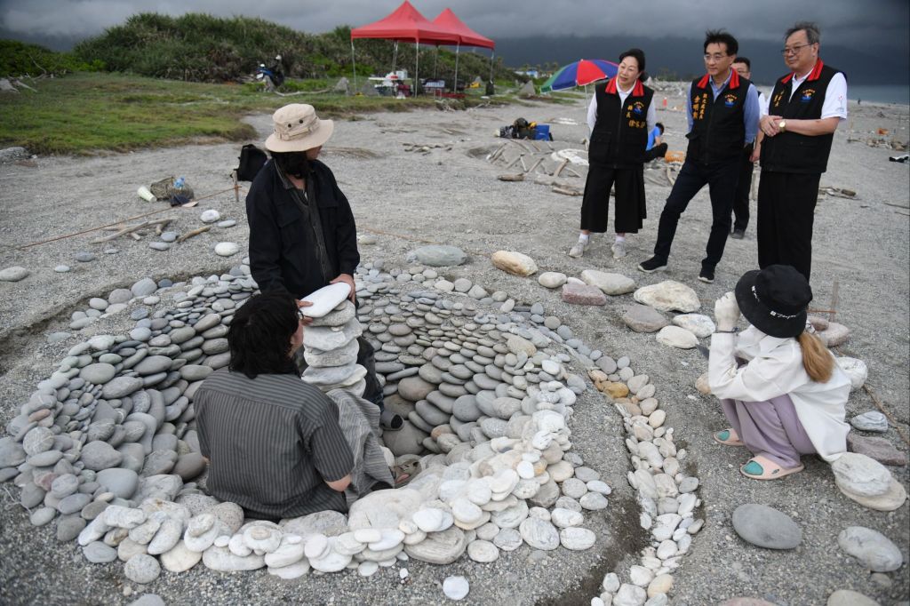 花蓮「2025曼波新城太平洋國際疊石藝術季」熱情展開中!花蓮縣長徐榛蔚日前親赴七星潭海岸風景區,逐一欣賞此次疊石藝術作品,並與創作者面對面交流,聆聽創作靈感與心路歷程。參賽藝術家們將會在現場製作到5月15日,並於5月17日正式開展,邀請全國民眾共襄盛舉。