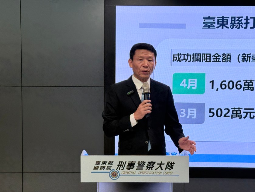 警察局長蔡燕明指出,根據內政部警政署165打詐儀錶板顯示,臺東縣114年4月份受理詐騙83件、財損金額新臺幣2,182萬元,警察局與金融機構也共同成功攔阻1,606萬元,而4月執行全國同步打詐專案查獲詐騙集團10團、犯嫌41人,查扣不法利得105萬5,297元。另外警政署也推出「百斬計畫獎5萬」專案,鼓勵民眾透過165打詐儀錶板「百斬行動檢舉車手專區」檢舉車手、提供情資,如經警方拘提或逮捕到案,可獲5萬元檢舉獎金,總計畫名額共100名,專案執行至獎金發完為止。