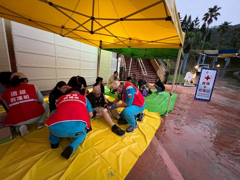園區同時啟動與花蓮縣消防局的資源通報與支援機制,由消防局特搜大隊簡弘丞大隊長現場指揮,帶領仁里分隊即刻出動人力與消防車輛支援火場搶救工作,並搜尋在濃煙與混亂中受困的傷患,情境高度逼真,充分考驗園區工作人員與消防單位的合作默契與應變能力。