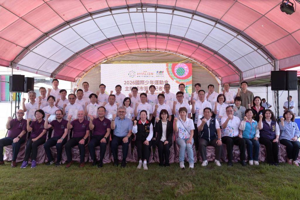 為迎接2026年第58屆國際少年運動會(International Children’s Games, ICG),花蓮縣政府今(16)日上午於花蓮縣運動休閒園區舉辦「2026國際少年運動會主辦城市簽約記者會暨執行委員會揭牌儀式」,正式與ICG簽署主辦城市合約,縣長徐榛蔚宣示,花蓮將全力以赴,為花蓮爭光,為台灣爭光。