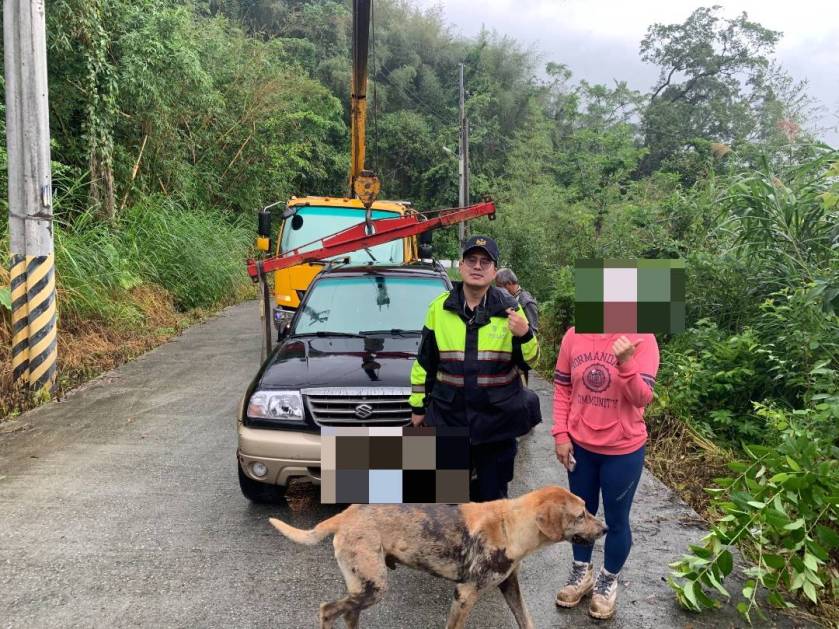 員警獲報趕赴現場並設置三角錐警示,確保道路安全無虞,同時協助駕駛聯繫拖吊業者,下午1時30分順利完成車輛排除作業。