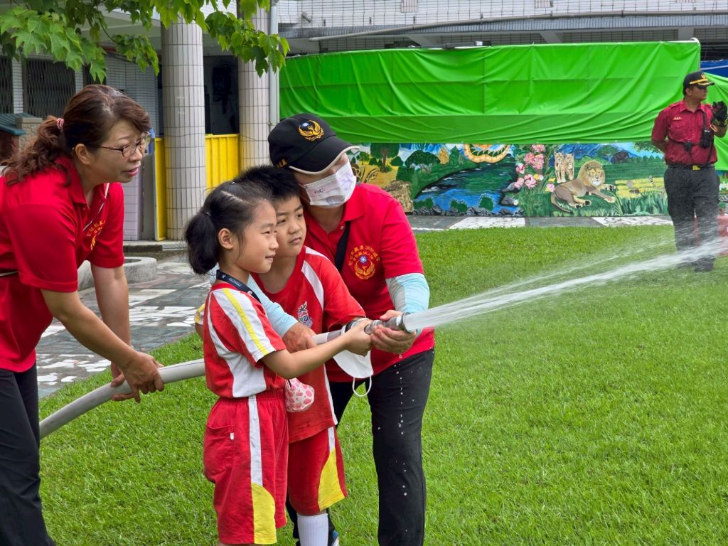 透過消防局專業叔叔及阿姨們仔細講解與示範引導,小朋友們認真參與每一項防火防災教育活動,包含:教師自衛消防編組演練、防火宣導與逃生應變、射水體驗、煙霧逃生模擬、滅火器操作示範與參與、小小消防衣體驗、廚房失火演練等。林思吟園長表示,消防體驗活動不僅豐富了小朋友們的課外生活,更重要的是提高了他們的火災安全意識,通過生動模擬狀況方式,希望每一位小朋友都能在體驗中學習保護自己的方法,讓安全成為他們生活的一部分。