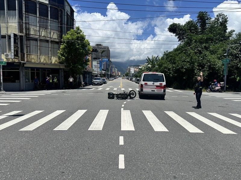 花蓮縣警察局吉安分局北昌派出所於昨(20)日上午11時許接獲報案,在吉安鄉中原路與自立路口有交通事故,警方獲報後迅速前往現場,初步了解為一部執行救護勤務中的救護車與一輛普重機車所發生的交通事故。