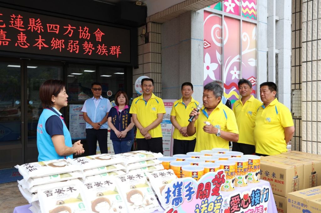 花蓮縣四方協會每年都會在花蓮境內舉辦多項公益活動,無論是捐贈生活物資、協助災後修繕,亦或是提供學校所需的足球用品與訓練器材,四方協會總是不遺餘力。理事長謝祥嶽表示,此次公益活動本著四方兄弟愛心相挺精神,匯集35位會兄們的捐贈基金,募集愛心米與營養品送給吉安的弱勢群體。看見鄉長游淑貞對吉安鄉弱勢家戶如親人般的照護,更肯定公所在社會福利救助上的用心,此次捐贈全力支持吉安在地農產,選用最佳吉安米和最有營養價值的燕麥片,提供最暖心的關懷藉由吉安鄉公所物資發放平台盡善到位。更承諾四方協會將永續與吉安鄉公所協力合作,提供給有需要的弱勢族群鄉親最即時的協助。