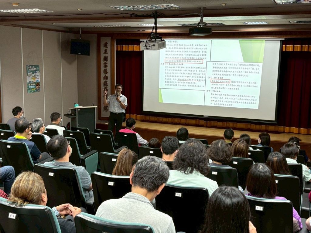臺北榮民總醫院玉里分院為強化同仁及履約中往來廠商的廉潔誠信觀念與正確法律認知,特於114年5月21日辦理「114年『圖利與便民』專案法紀宣導」,並邀請臺灣花蓮地方檢察署蔡勝浩主任檢察官擔任此次講座,與會人員約計70人。