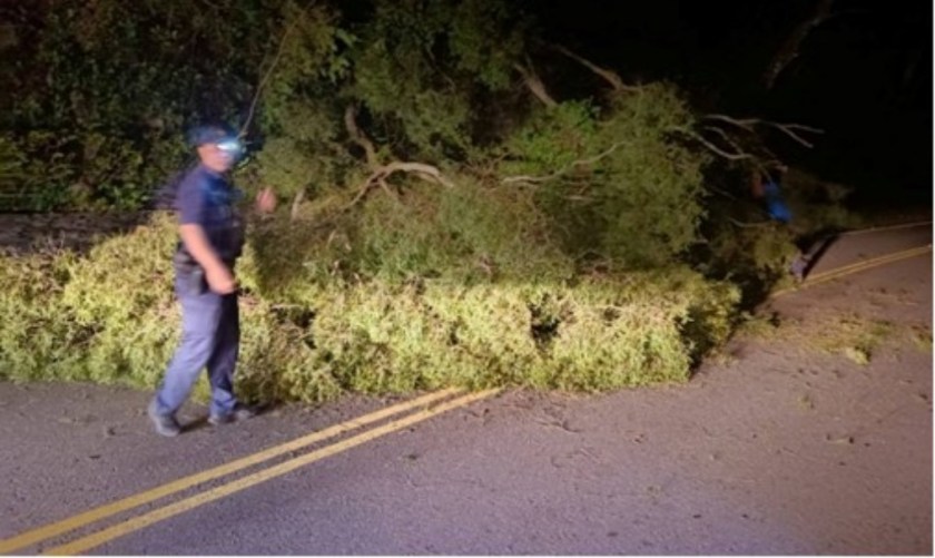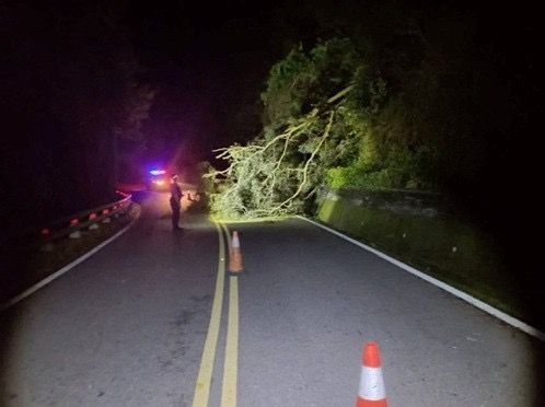 屏東縣三地門鄉台24線26.4公里處於日前晚間有路樹倒塌,造成雙向車道受阻,影響往來三地門鄉與霧台鄉的車輛通行。屏東縣政府警察局里港分局三地門分駐所所長陳志遠與警員許振威獲報後迅速趕抵現場,立即展開交通指引與初步排除作業。