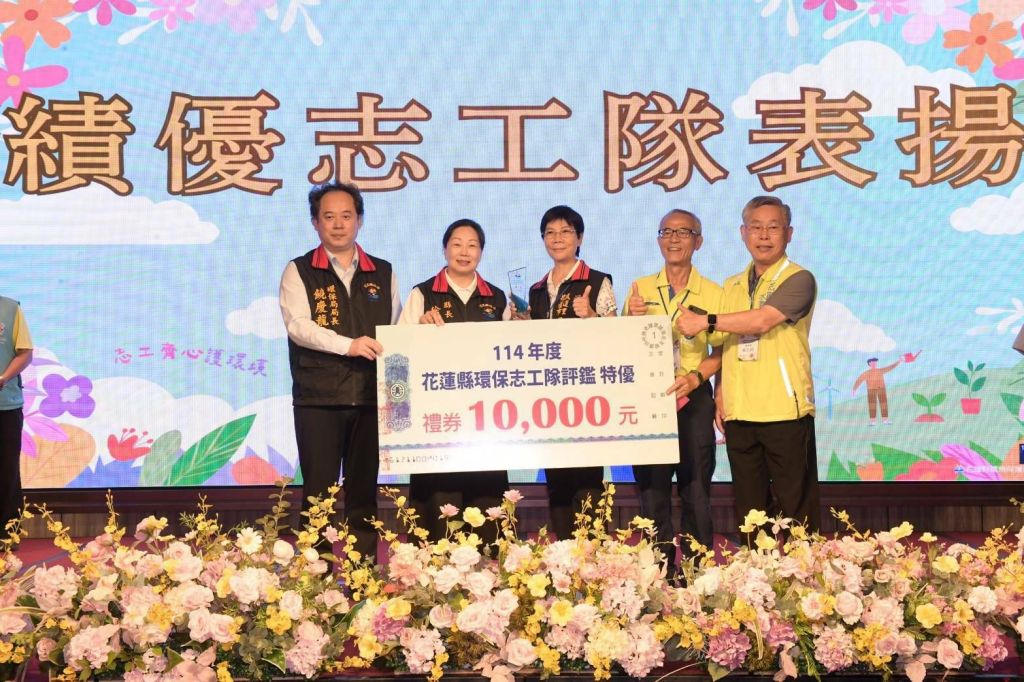 花蓮縣環境保護局於今(22日)日假美侖大飯店舉辦「114年度績優環保志工表揚典禮」,由徐榛蔚縣長親自出席並公開表揚特優環保志工隊5隊、優等環保志工隊5隊,以及特優環保志工10名與優等環保志工40名。這些志工長年無私奉獻,積極參與社區清潔、河川巡守、資源回收及環境教育等多元環保行動,更有花蓮縣花蓮市民勤社區發展協會環保志工隊田于妹志工、花蓮縣花蓮市主學里志願服務工作隊黃婷志工、花蓮縣花蓮市國裕里環保志工隊蘇蓮珠志工、花蓮縣壽豐鄉平和吳全社區發展協會吳素霞志工、花蓮縣光復鄉大同社區發展協會志工隊張瑞華志工及花蓮縣瑞穗鄉瑞良社區發展協會環保志工隊黃榆庭志工皆已服務達20年以上,成為花蓮邁向永續發展的重要夥伴。