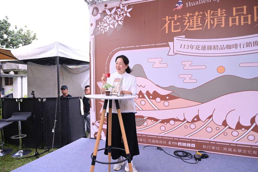 為推廣花蓮在地精品咖啡產業,花蓮縣政府今(24)日在花蓮將軍府1936舉辦「113年花蓮精品咖啡分享會」,縣長徐榛蔚在農業處長陳淑雯陪同下親自出席致意。此次活動由8位在花蓮精品咖啡評鑑得獎的農友親身分享經驗,並與大家分享花蓮精品咖啡推廣形象影片,展現花蓮農友用心栽種的咖啡成果,邀請鄉親一同體驗花蓮精品咖啡的醇香風味。