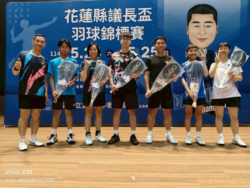 由花蓮縣議會委辦、花蓮縣永冠羽球協會主辦的「114年花蓮縣議長盃羽球錦標賽」,於5月24日至25日在花蓮縣立宜昌國中體育館熱烈展開。此次賽事吸引超過300位熱愛羽球的鄉親報名參賽,承辦單位將賽事組別分為國小組 、國中組、社會組、歡樂團體組….等22組,涵蓋老中青三代。