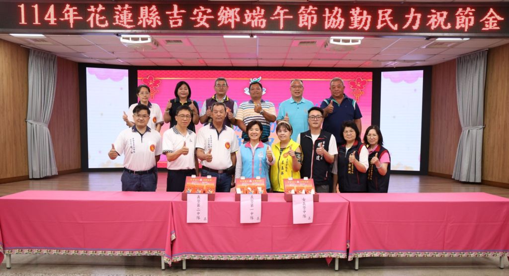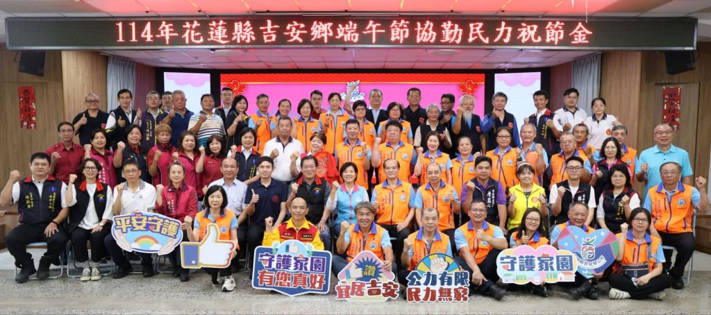 吉安鄉公所特於端午節前夕辦理「114年協勤民力祝節金頒贈活動」,來感謝各協勤民力單位,長期以來在公務資源有限的情況下,無私分擔、共同建構起社區防護網。活動由鄉長游淑貞親自主持,並親自頒贈祝節金給予義消、義警、民防人員、巡守隊員每人500元,共1034份,鼓勵協勤民力夥伴在搶災救援與多元救助服務中各司其職、日夜投入,共啟社會服務圓滿。花蓮縣消防局科長王忠明、花蓮縣警察局吉安分局組長王忠光、吉安鄉民代表詹益萬、林宗達等多位貴賓亦蒞臨現場,表達對協勤民力的肯定與支持。