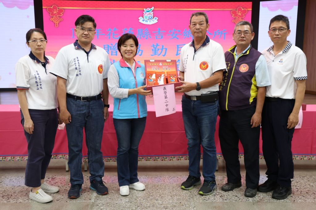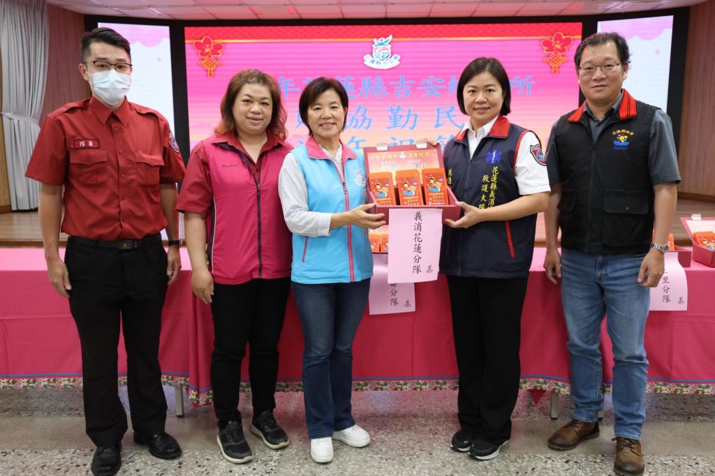 吉安警分局王忠光組長致詞中感謝義消、義警、民防長期無私協助,在警力有限的情況下,總是不辭辛勞的無私奉獻,令人敬佩;巡守隊大隊長詹維明也肯定游鄉長對地方民生的付出到位,從通學步道的環境改善,到交通安全提案的快速回應,皆展現了卓越的領導力與行動力,並表示將持續協助守護地方安全;詹益萬代表則分享與家人多年來投入義消工作的經驗,未來他將持續與公所團隊攜手推展相關福利提案,共創樂活安全社區。