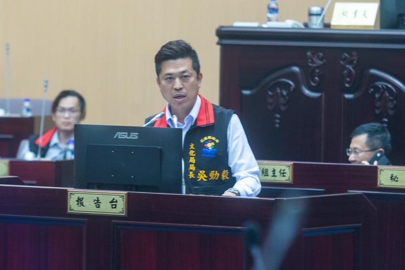 花蓮縣議會第20屆第5次定期會今(27)日上午進行縣政總質詢首日議程,當縣議員邱光明要針對新城鄉聯合公署工程用地施工中發現使其遺跡一事,要求文化局長吳勁毅上台備詢時,吳勁毅卻因故缺席,由副局長曾之妤備詢。