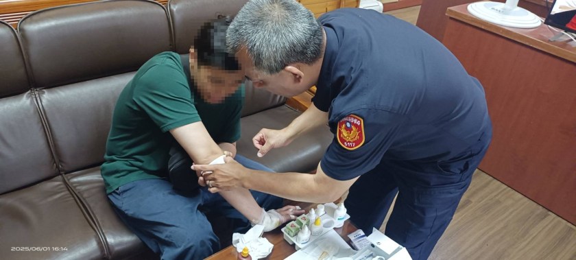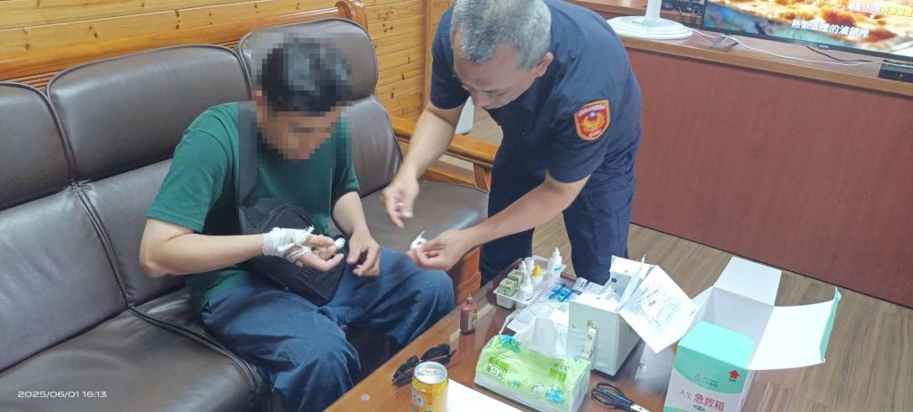 日前1名吳姓民眾騎乘機車由臺北市出發沿台七線欲前往花蓮,行經65.9公里處因輪胎壓到青苔不慎滑倒,致左手臂及手掌受傷流血,因此處位於偏遠山區,周遭無任何之醫療院所,幸好看到附近有派出所袖招,而就近到派出所求助。