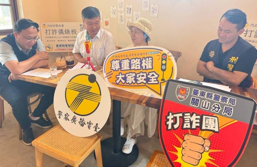 為提升民眾防詐意識,臺東縣警察局關山分局分局長鍾國楨於今(5)日9時許,率同偵查隊長鄭志舷,與關山鎮長彭成豐共同應邀接受警廣臺東分臺「臺東好說好說」節目,與主持人敏玲就近期高發的「社群假投票,騙取LINE帳號」詐騙手法,進行空中宣講,盼藉由實例說明與專業建議,強化大眾防詐意識,避免更多民眾受害。