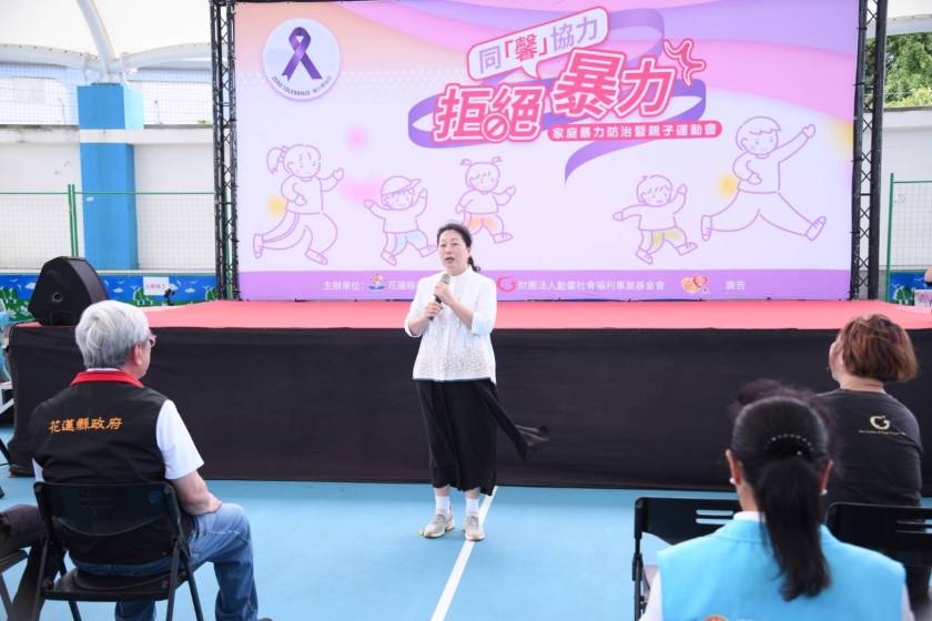 花蓮縣政府社會處與勵馨基金會多年來建立深厚合作關係,攜手守護在地家庭,成為花蓮防暴體系中不可或缺的重要支柱。此次活動現場設有「社福市集」,結合花蓮縣警察局婦幼隊、吉安社福中心、花蓮就業中心、壽豐原住民族家庭服務中心、兒童暨家庭關懷協會、家扶基金會、世界展望會、衛生局身心健康及成癮防治所、毒品危害防制中心、現代婦女教育基金會及花蓮地方法院家暴服務處等單位,共同透過闖關遊戲與韻律體能活動,推廣家庭暴力防治觀念,幫助民眾辨識暴力行為、認識可用資源,進一步實踐「暴力零容忍」的目標。