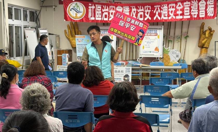 為強化社區治安與交通安全觀念,臺東縣鹿野鄉龍田社區發展協會於昨(12)日晚間19時,假社區活動中心舉辦「社區治安會議」。會議由村長蔡登源主持,社區發展協會理事長張鉦榮與約40名社區居民熱烈參與。會中邀請臺東縣警察局關山分局「識詐交安宣講團」與會進行宣導,透過面對面交流,回應民眾關切的治安與交通議題,落實社區警政理念。
