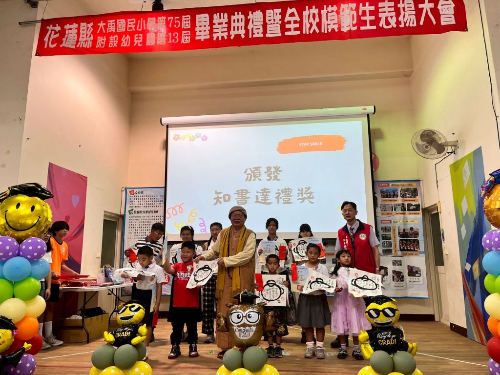花蓮縣大禹國小於今(17)日上午辦理國小第75屆暨附設幼兒園第13屆畢業典禮。學校精心準備一場溫馨而隆重的畢業典禮,由校長楊朝全主持,祝福5位國小畢業生以及5位幼兒園畢業生完成人生重要的學習階段,現場蒞臨許多貴賓與家長專程為畢業生祝福,讓畢業生留下難忘的回憶。