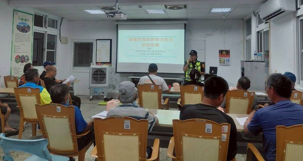 為落實原住民族文化保留與法治教育並進,臺東縣警察局關山分局崁頂派出所於昨(16)日19時至20時,在海端鄉崁頂村活動中心辦理「獵槍管理與野動法修法部落宣講」活動,由所長徐金祥親自主持,並與警員邱麗香共同進行宣講,現場吸引不少部落族人熱情參與,現場提問、即時回復,警民雙向溝通無礙,期達雙贏成效。