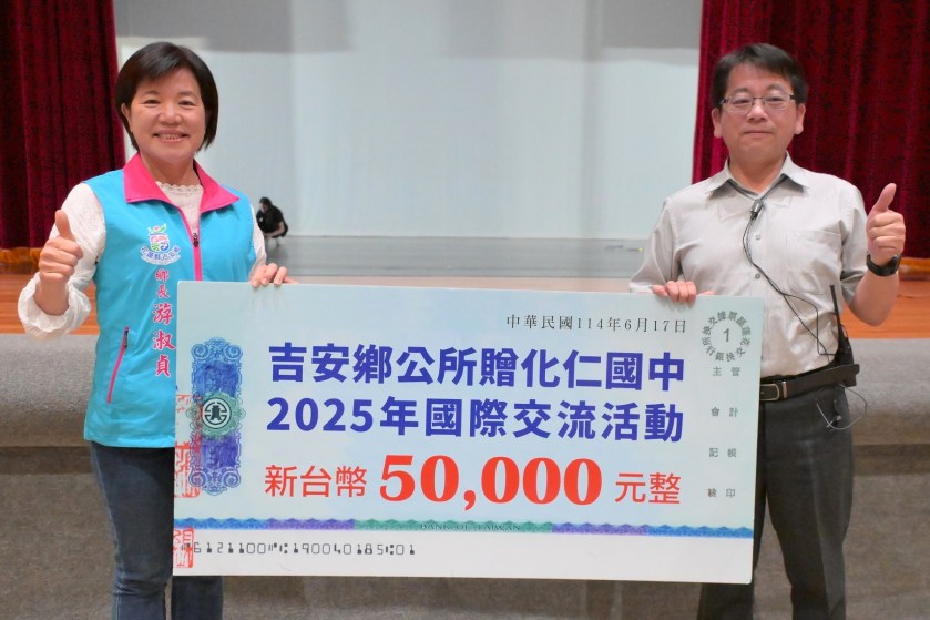 化仁國中吳盛正校長表示,游鄉長與化仁國中舞蹈班情緣深達11年,當初舞蹈班是在103 年由縣府支持、以及時任鄉民代表的鄉長游淑貞極力爭取在吉安鄉設班,學生們多年來在各項大小賽事締造佳績,此次更因優異的比賽成績及表現,受馬來西亞峇株巴轄華仁中學邀請,於6月18日至21日遠渡重洋進行舞蹈藝術教育文化交流,希望學生們將平日辛勤的練習成果,得以自信在他國精湛分享。